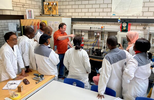 An der Bundesfachschule Kälte-Klima-Technik (BFS) in Maintal konnten Ende April 15 Frauen und Männer aus Mali, Kamerun, Mauritius, Burkina Faso und dem Senegal zwei Wochen lang ihre Fachkenntnisse im Umgang mit natürlichen Kältemitteln vertiefen. Die im Rahmen des Cool Training-Programms durchgeführte Schulung wurde von erfahrenen BFS-Dozenten begleitet – stets unterstützt von zwei Dolmetscherinnen, die den französisch-sprachigen Teilnehmerinnen und Teilnehmern simultan alle Fachinhalte übersetzten. Die hervorragend ausgestatteten Labore, die detaillierten und umfangreichen Schulungsunterlagen sowie die professionelle Betreuung an der BFS wurden von allen ausdrücklich gelobt.
