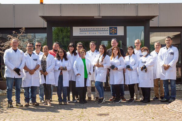 Nach langer Corona-Pause konnten wir vom 27. Juni bis 8. Juli 2022 endlich wieder internationale Gäste an der BFS in Maintal begrüßen. 16 Teilnehmerinnen und Teilnahmer aus verscheidenen Ländern Lateinamerikas wurden in den zwei Wochen theoretisch und praktisch geschult, wobei der Schwerpunkt auf den Einsatz natürlicher Kältemittel, wie R290, R744 und R717 lag. Abgerundet wurde die Schulung mit einer Exkursion in einen fleischverarbeitenden Betrieb. Zur weiteren Verbesserung der Nachhaltigkeit wird unser Kollege, Michael Hoffmann die kommenden sechs Wochen mit den Teilnehmern aus Costa Rica im Land direkt die Bildungszentren besuchen und weitere Schulungen durchführen.