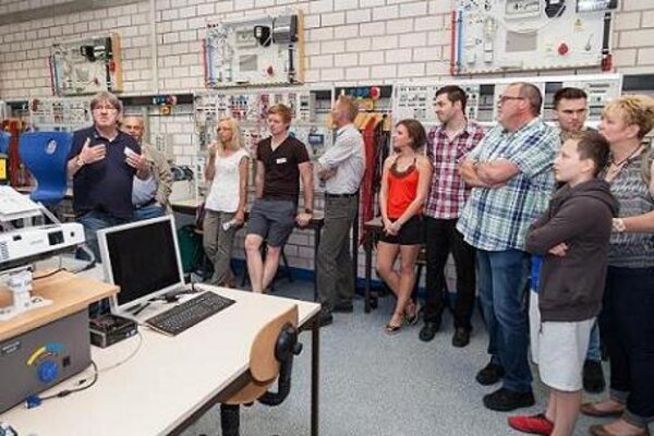 Die Schüler, Studenten, Ehemaligen, Freunde und Unterstützer waren am 4. Juni bei bestem Wetter zu einem „Tag der offenen Tür“ eingeladen. Die Gäste konnten sich bei Rundgängen durch die Schule über die Ausstattung informieren. Versuche, Vorführungen und Vorträge veranschaulichten interessant und unterhaltsam die Möglichkeiten der Kälte- und Klimatechnik. Viele Gäste brachten ihre Familien mit Kindern mit. Diese konnten sich mit Hüpfburg, Bastelbus, Tischkicker und Torwandschießen beschäftigen. Ein Höhepunkt im wahrsten Sinne des Wortes war der Kran mit Personenkorb, den die Firma Eisele aus Maintal zu diesem besonderen Anlass bereitgestellt hatte. Aus fast 60 m Höhe konnten die Gäste einen wundervollen Blick über das Schulgelände, Maintal, Frankfurt und bis zum Taunus und Spessart genießen. Für das leibliche Wohl war natürlich auch gesorgt – der Getränkewagen der Brauerei Bier-Hannes erfrischte die Gäste mit Getränken. Steaks und Thüringer Rostbratwürste vom Holzkohlegrill stillten den Hunger. Zur Erfrischung zwischendurch gab es Softeis aus der schuleigenen Eismaschine und zum Abschluss waren alle Gäste noch zu Kaffee und Kuchen eingeladen. Die über 300 Gäste verbrachten einen abwechslungsreichen Tag in Maintal, an den sie sich gerne erinnern werden. Weitere Bilder und Informationen unter www.bfs-esak-fest.de